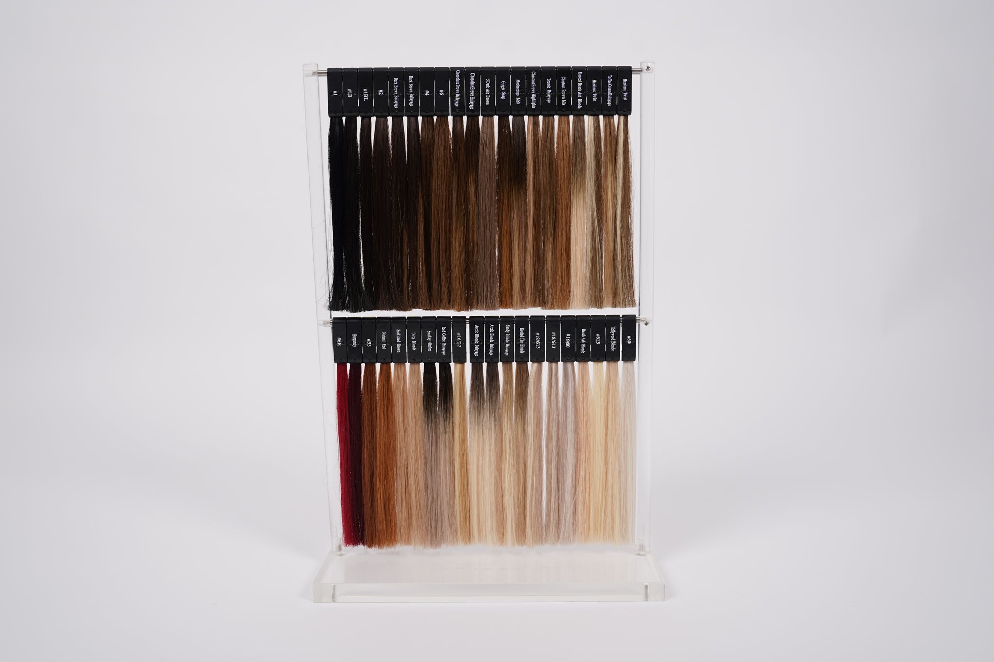 The Superior Hair Colour Stand is designed for professional salons, stylists, educators, and training academies who require a clean, organised way to display their extension colour range during consultations or education.